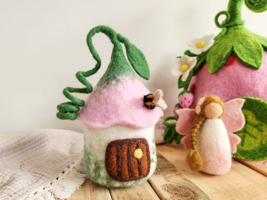 Pink Bellflower Bungalow - Felt Fairy House