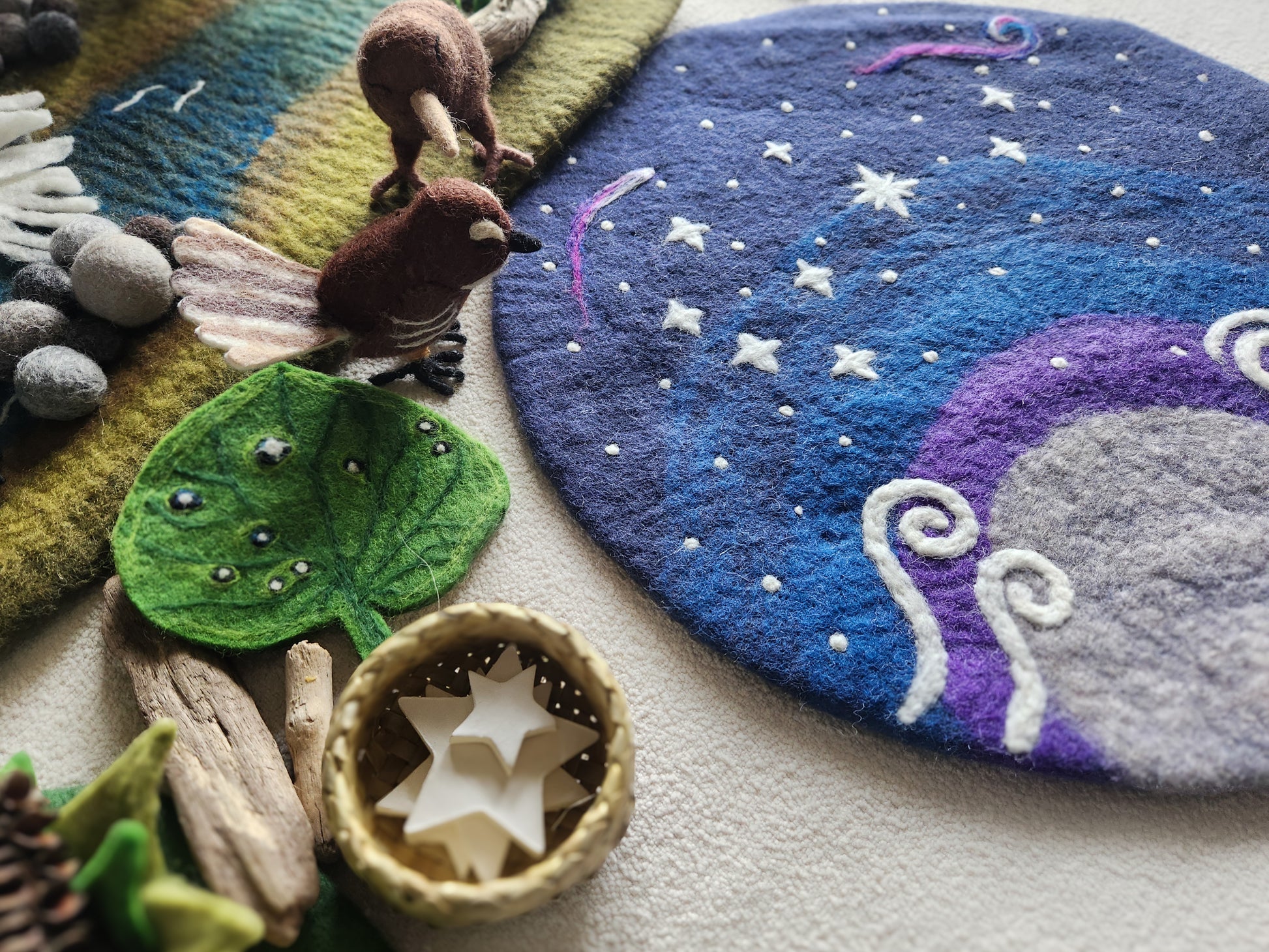 Whether it’s an astronaut’s journey, a tale of Matariki rising, or quiet stargazing with forest friends, this mat invites children to explore the skies, both real and imagined.