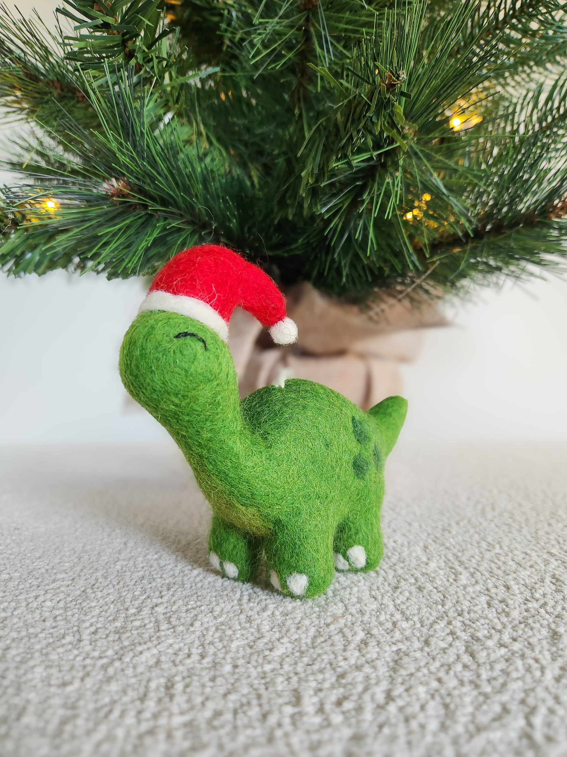 Introducing BrontoClaus, the lovable Brontosaurus spreading prehistoric cheer during the holiday season! This eco-friendly felt ornament will sprinkle a touch of whimsy onto your tree, festive mantel or tabletop, or even bring fun to small world play.