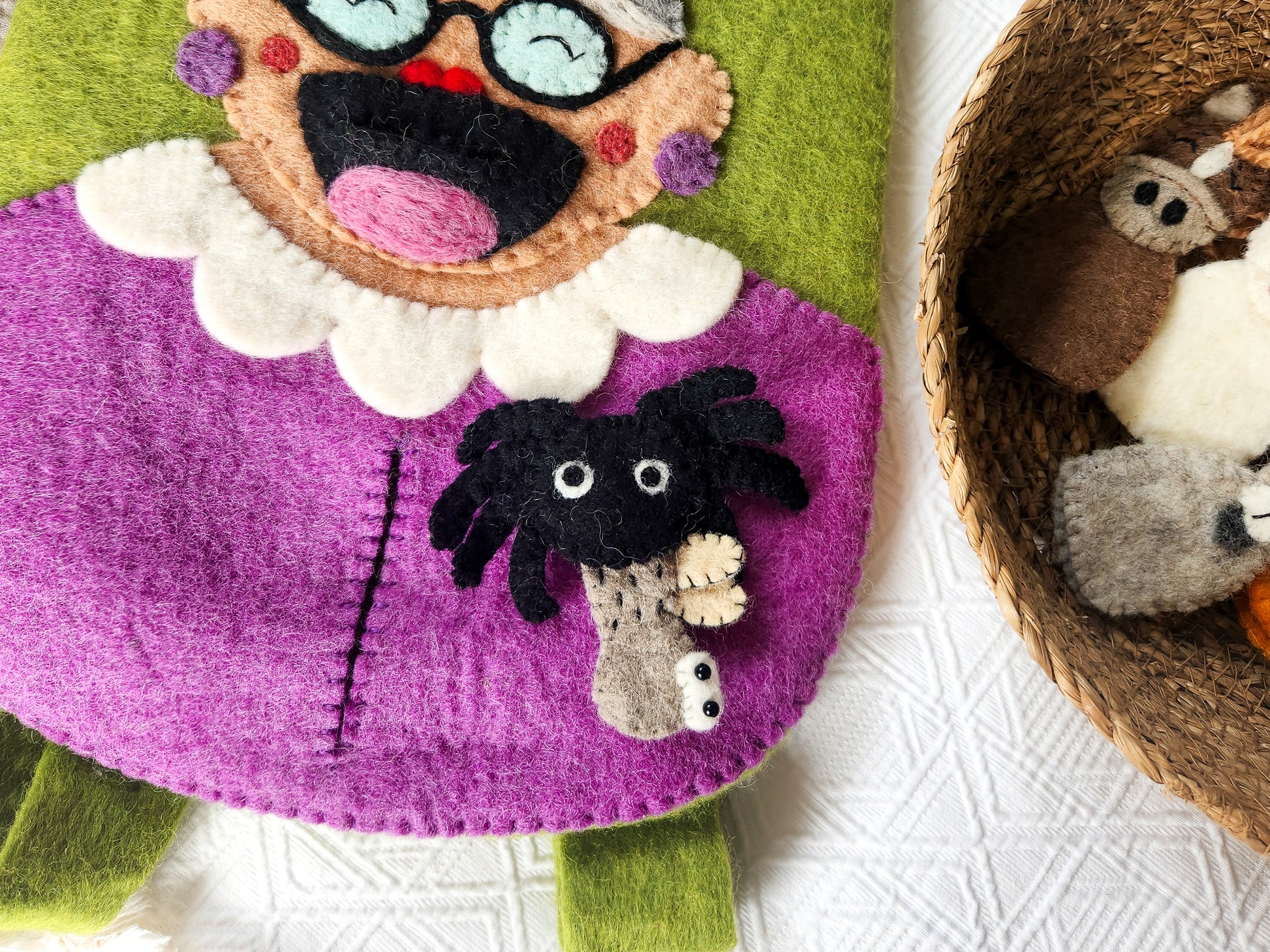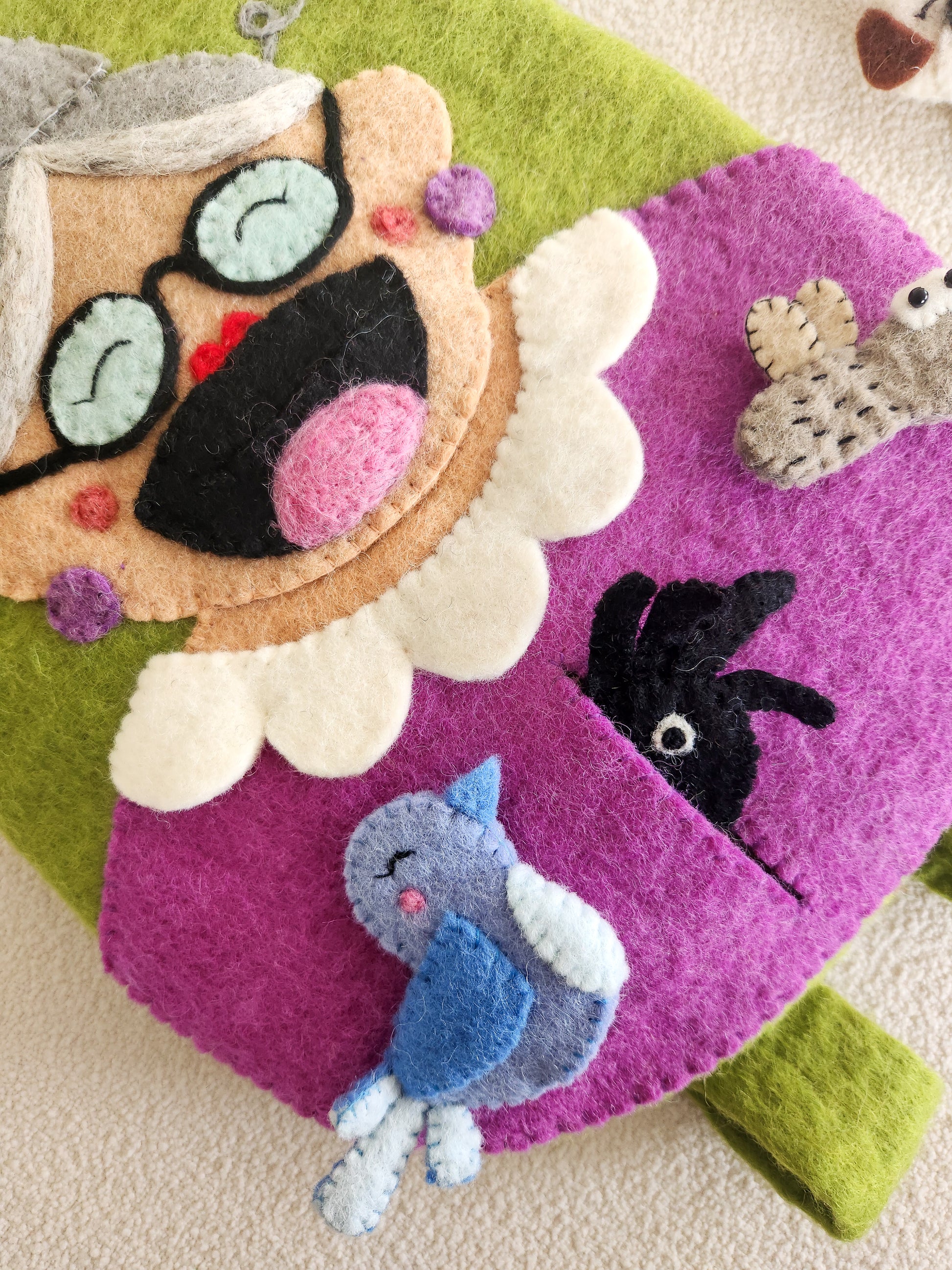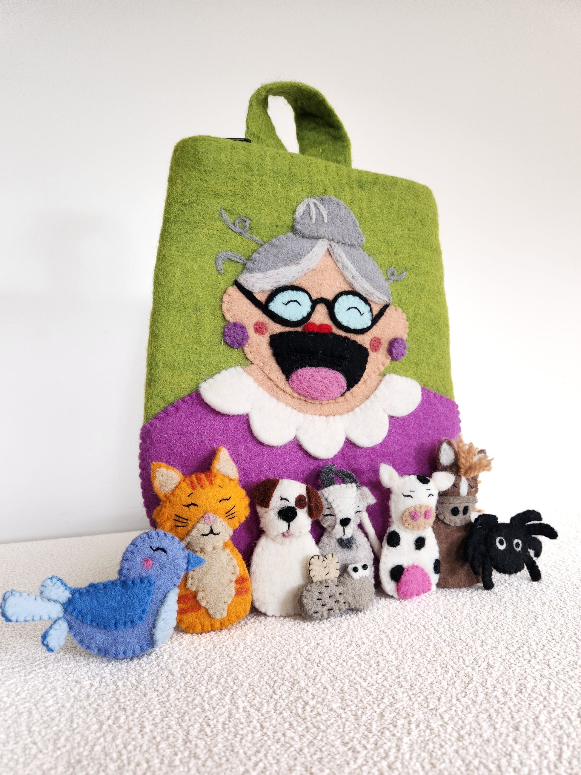 There Was an Old Lady Who Swallowed a Fly - Old Lady Play Bag & Finger Puppet Set